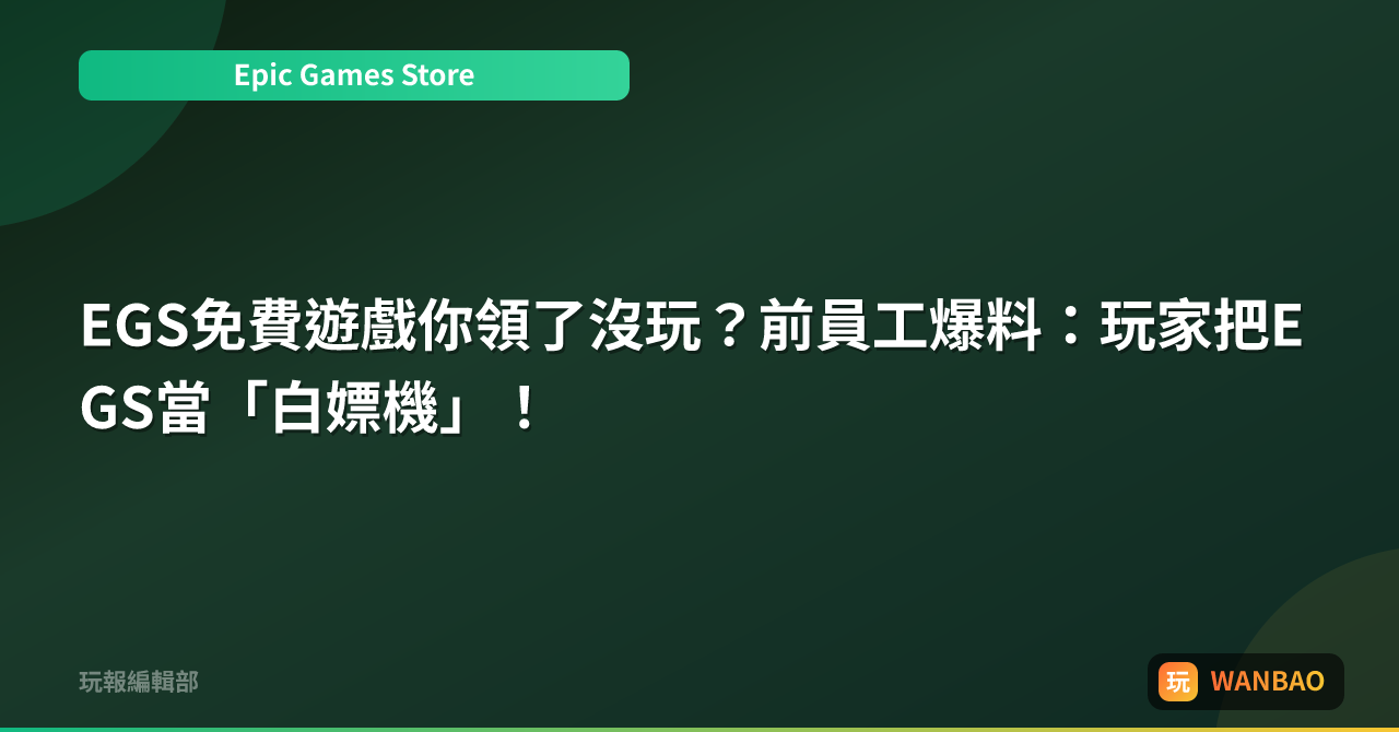 EGS免費遊戲你領了沒玩?前員工爆料:玩家把EGS當「白嫖機」!