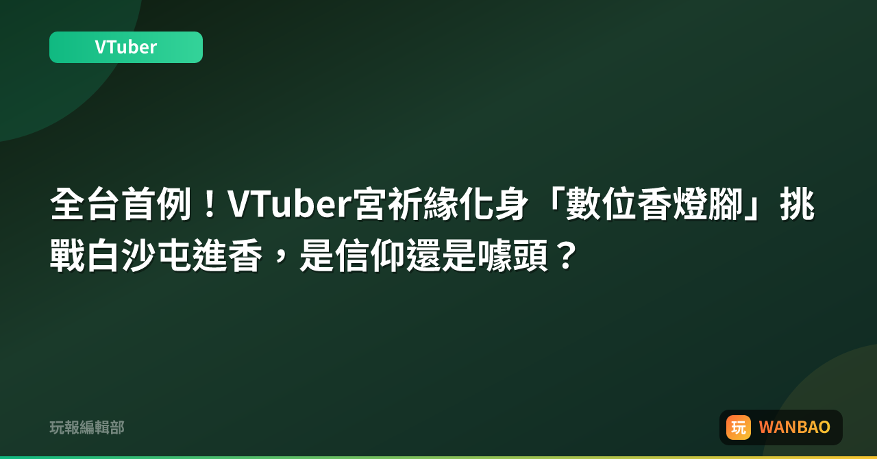 比 4A 大作還炸裂!VTuber 挑戰白沙屯媽祖 9 天 8 夜,這場跨次元修行瘋出新高度!