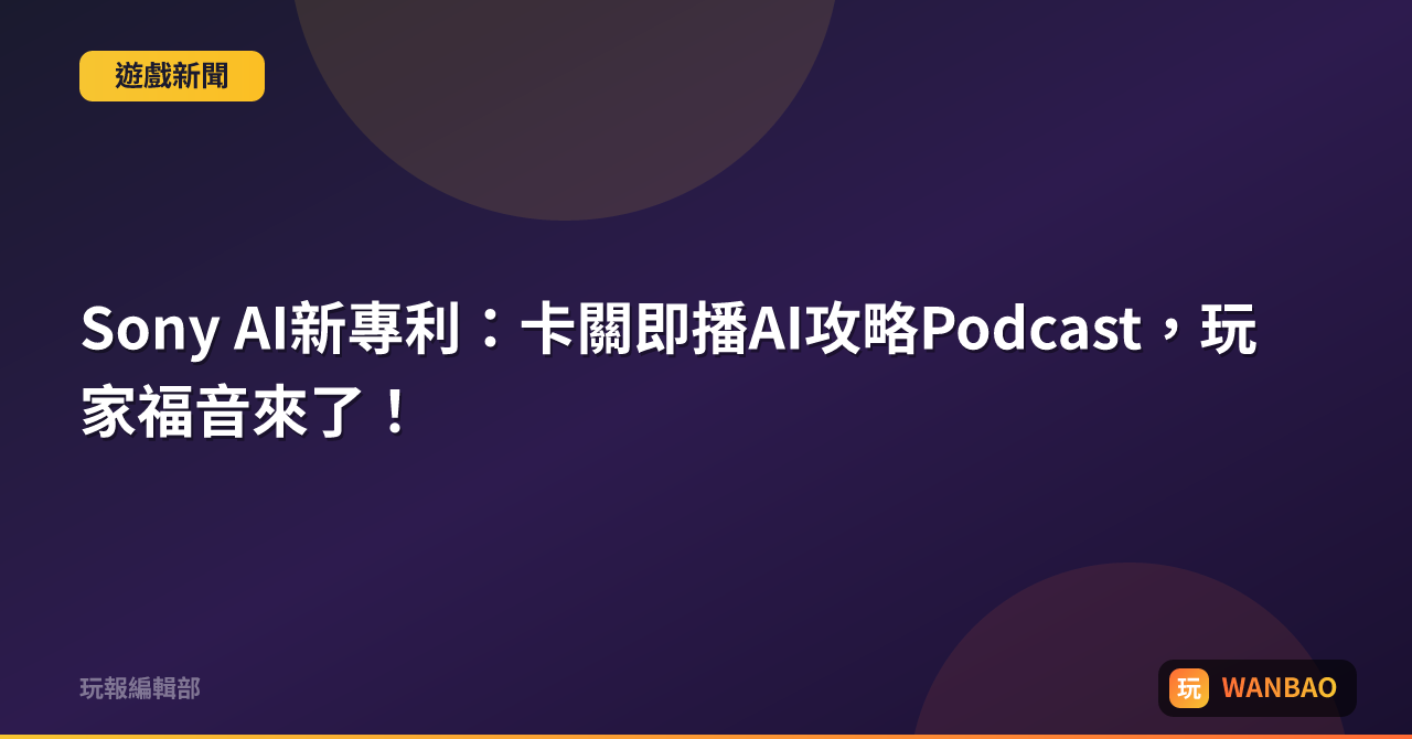 Sony AI新專利:卡關即播AI攻略Podcast,玩家福音來了!
