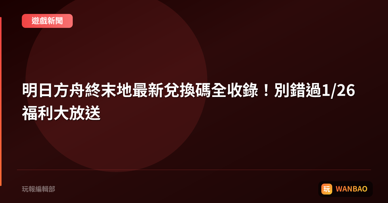 各位指揮官,早上好!今天小編要跟大家聊聊《明日方舟:終末地》剛剛上線的全新兌換碼與禮包碼,這波更新在1月26日同時放出,讓不少玩家在開局階段就能抓到超值資源。雖說兌換碼在手遊圈算是老梗,但每次官方拋出新碼,總會掀起一波搶兌熱潮,尤其是《終末地》這款以高難度關卡著稱的遊戲,早期資源的缺口直接影響排卡與強度提升,所以這波福利的時效性與實用性格外值得關注。 先簡單說明一下這波碼到底長什麼樣子:包括「N...