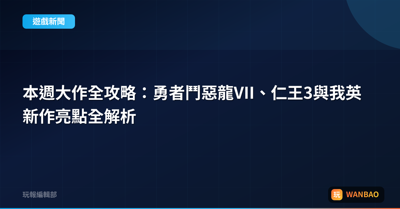 嗨,大家好!小編今天忍不住要跟大家聊聊這波「本週新作」的熱度。從《勇者鬥惡龍 VII》華麗登場,到《仁王 3》與《我英》新作接力解禁,這波新作真的是讓玩家們的心跳頻率直線上升。先說說《勇者鬥惡龍 VII》吧,這是系列第七作,距離上一次正統正篇已經整整十年,期待值直接破表。再加上《仁王 3》繼承了前作硬核武俠的血脈,還有全新IP《我英》要正式登場,市場上瞬間多了三道亮眼的光柱。 先來點背景鋪陳。《...