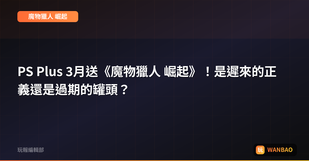 PS Plus 3月送《魔物獵人 崛起》!是遲來的正義還是過期的罐頭?