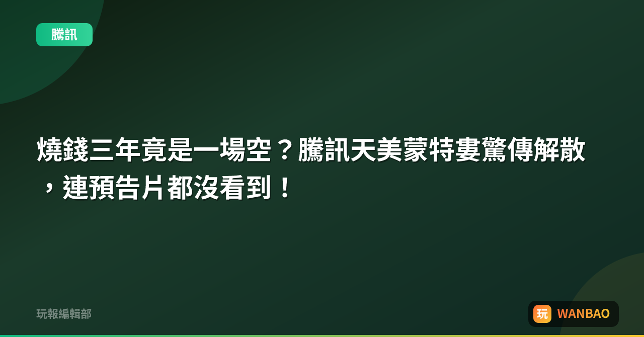 燒錢三年竟是一場空?騰訊天美蒙特婁驚傳解散,連預告片都沒看到!