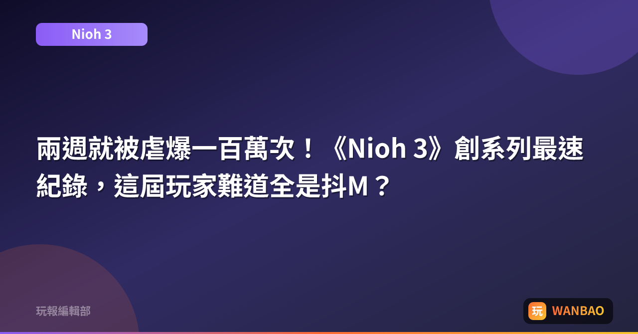 兩週就被虐爆一百萬次!《Nioh 3》創系列最速紀錄,這屆玩家難道全是抖M?