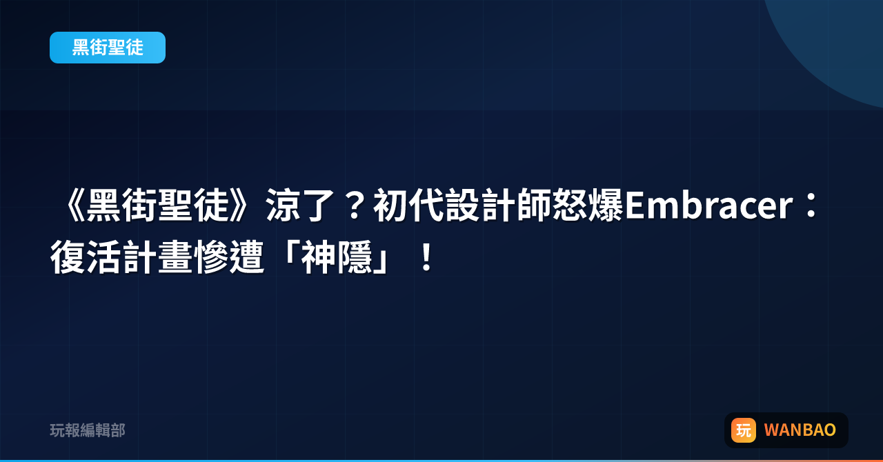 《黑街聖徒》涼了?初代設計師怒爆Embracer:復活計畫慘遭「神隱」!