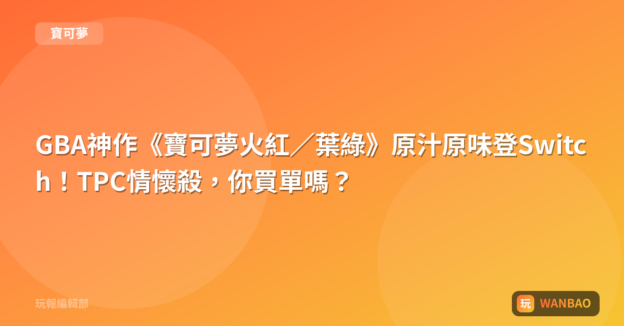 GBA神作《寶可夢火紅/葉綠》原汁原味登Switch!TPC情懷殺,你買單嗎?