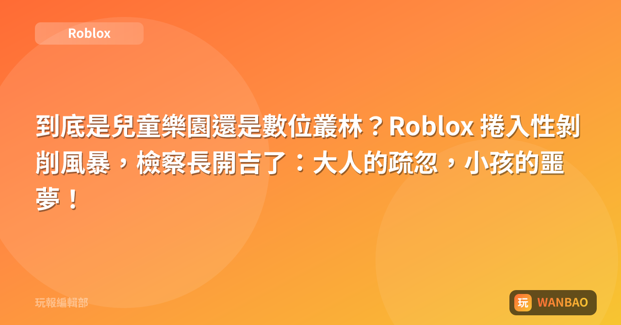 到底是兒童樂園還是數位叢林?Roblox 捲入性剝削風暴,檢察長開吉了:大人的疏忽,小孩的噩夢!