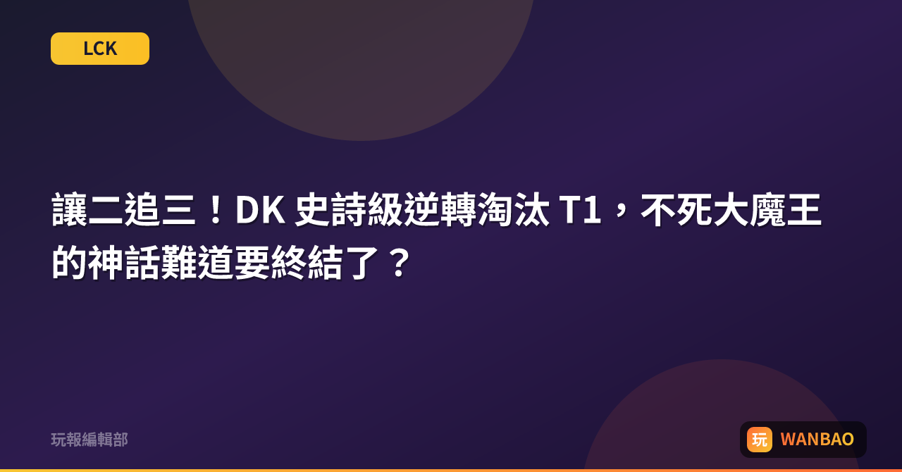 讓二追三!DK 史詩級逆轉淘汰 T1,不死大魔王的神話難道要終結了?