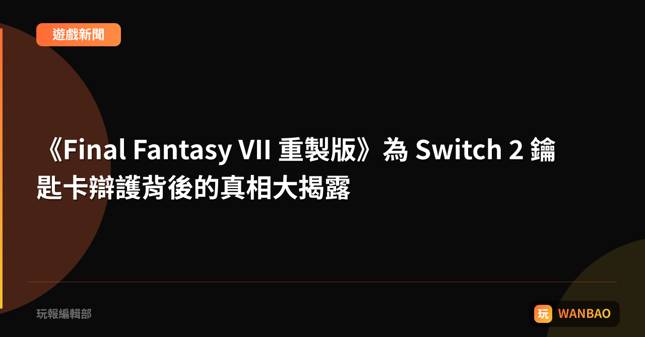 小編最近在玩《Final Fantasy VII Remake Intergrade》時,發現了個讓人又愛又恨的話題:開發團隊竟然為即將登場的 Switch 2 遊戲鑰匙卡站台!這件事立刻在粉絲群聚中掀起一陣熱烈討論,因為不管是懷舊的老玩家,還是期待新機的年輕族群,都對這張神秘的卡片有著不同的期待與疑慮。讓我們先把時間軸拉回來—— 在 2023 年推出的《Final Fantasy VII Re...