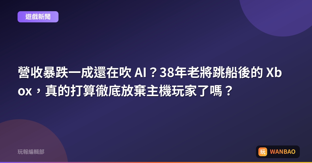營收暴跌一成還在吹 AI?38年老將跳船後的 Xbox,真的打算徹底放棄主機玩家了嗎?