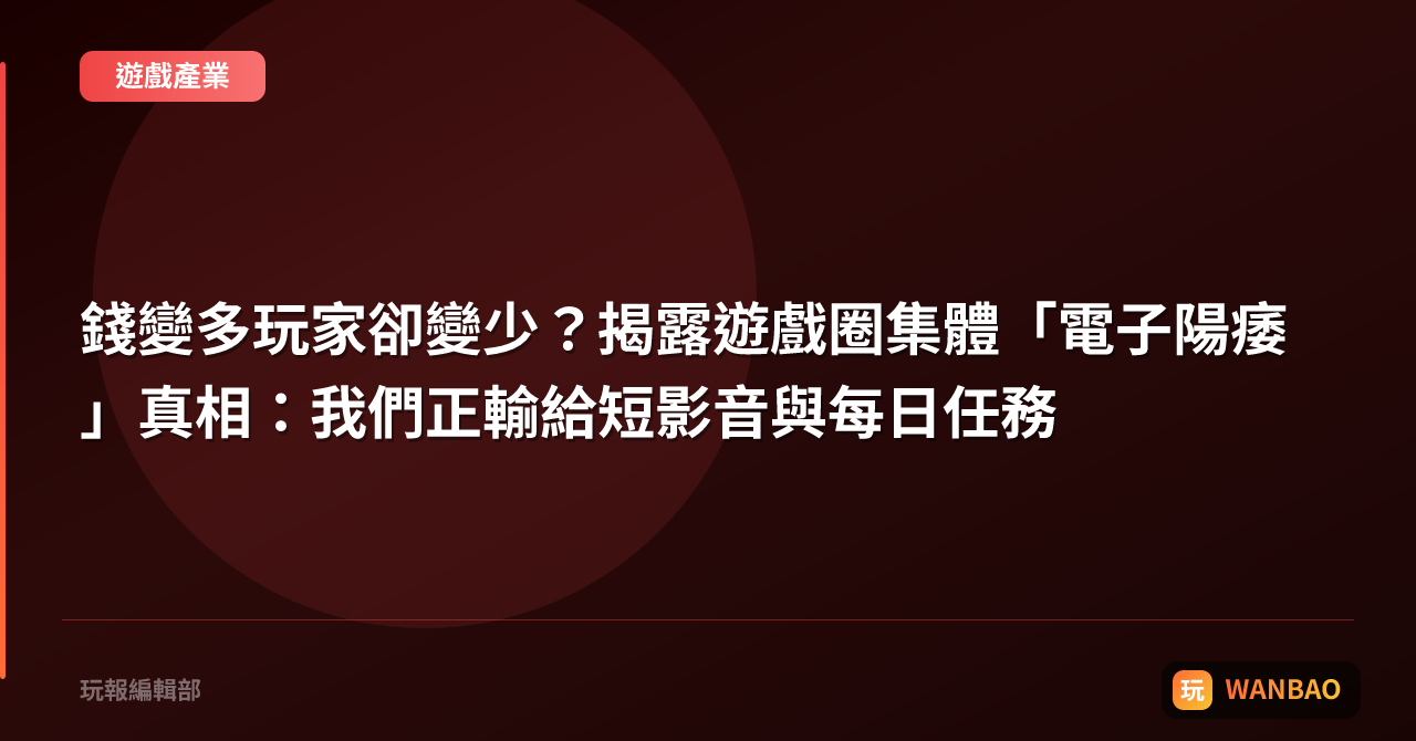 錢變多玩家卻變少?揭露遊戲圈集體「電子陽痿」真相:我們正輸給短影音與每日任務