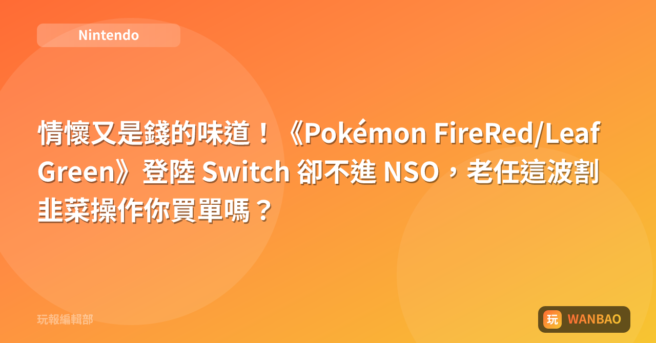 情懷又是錢的味道!《Pokémon FireRed/LeafGreen》登陸 Switch 卻不進 NSO,老任這波割韭菜操作你買單嗎?