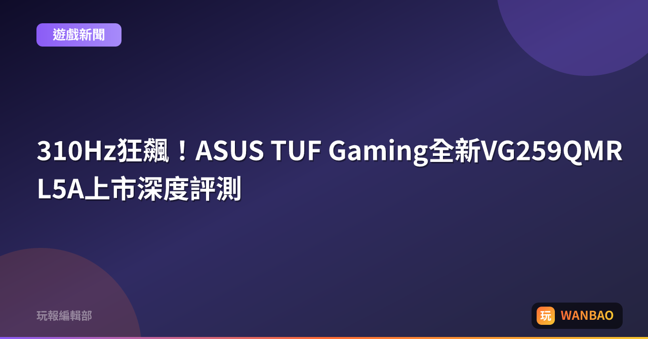 大家好,我是玩報的小編,今天要跟各位聊聊 ASUS 剛發佈的全新 TUF Gaming 第五代電競螢幕 VG259QMRL5A。這台 24.5 吋的 IPS 面板不只外觀採用軍規風格,最讓人血沸的是最高 310Hz 的刷新率,對於追求極速反應的玩家來說,簡直是夢魘與天堂的交叉點。雖說 310Hz 已經不是第一次在市場上出現,但結合 HDR、低延遲與 TUF 的堅固設計,仍然值得我們好好拆解。 先...
