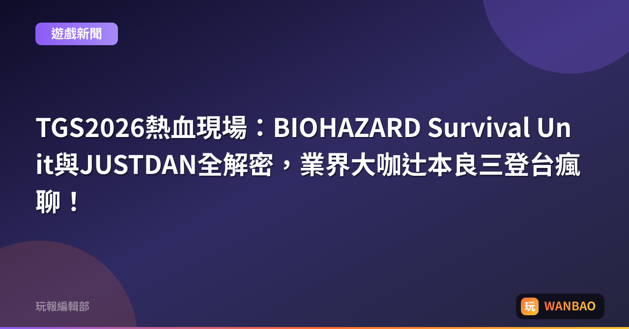 嗨,各位遊戲夥伴!TGS2026剛結束,我們玩報編輯部可是直接沖到展區,親眼目睹了《BIOHAZARD Survival Unit》與《JUSTDAN》兩大新作的震撼亮相。更讓人血沸的是,資深製作人辻本良三與德田優也罕見同框,於座談會上拋出滿滿乾貨。這次的展會不只是新作發布,更是日本遊戲產業未來方向的縮影,值得我們好好拆開來聊聊。 先說說《BIOHAZARD Survival Unit》。這次C...