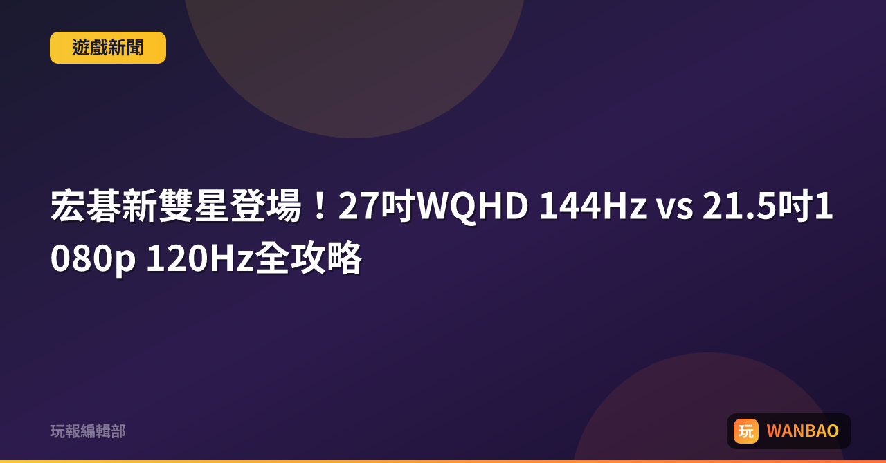 宏碁新雙星登場!27吋WQHD 144Hz vs 21.5吋1080p 120Hz全攻略