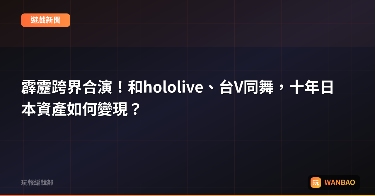說起霹靂,大家第一時間想到的可能是經典的布袋戲劇團,但近年他們把版權資產搬到日本,累積了十年的動畫與遊戲授權。這些龐大的日本資產一直是公司資產表上的沉重負擔,卻找不到有效的變現管道。現在,霹靂聯手日本超人氣 VTuber 事務所 hololive,還揪來本土新銳「台V」聯合辦演唱會,終於把這些資產搬上舞台、搬到螢幕前,讓粉絲直接看到「資產變現」的真實樣貌。 這波跨國合作的背後,其實是霹靂多年來在...