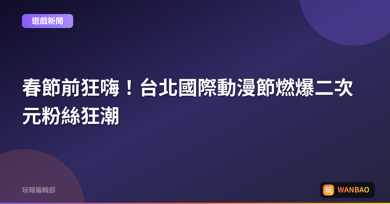 春節前夕,台北國際動漫節在台北世貿中心火熱開幕,從今天起連續六天把二次元的熱情灌進城市每個角落。從早上的開幕儀式到深夜的同人市集,熱鬧程度堪比年貨大街,讓人感受到了「過年不能只有年菜」的全新選項。 這次動漫節被稱為春節前最大檔,不僅聚集動畫、漫畫,更把電玩、周邊、Cosplay一次打包,吸睛度直衝天際。官方官網上列出超過百家的參展廠商,從大手筆的日系巨頭到在地新銳工作室,都爭先恐後想在年節前爭奪...