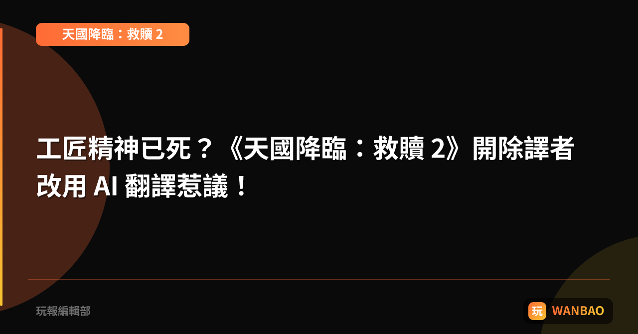 工匠精神已死?《天國降臨:救贖 2》開除譯者改用 AI 翻譯惹議!