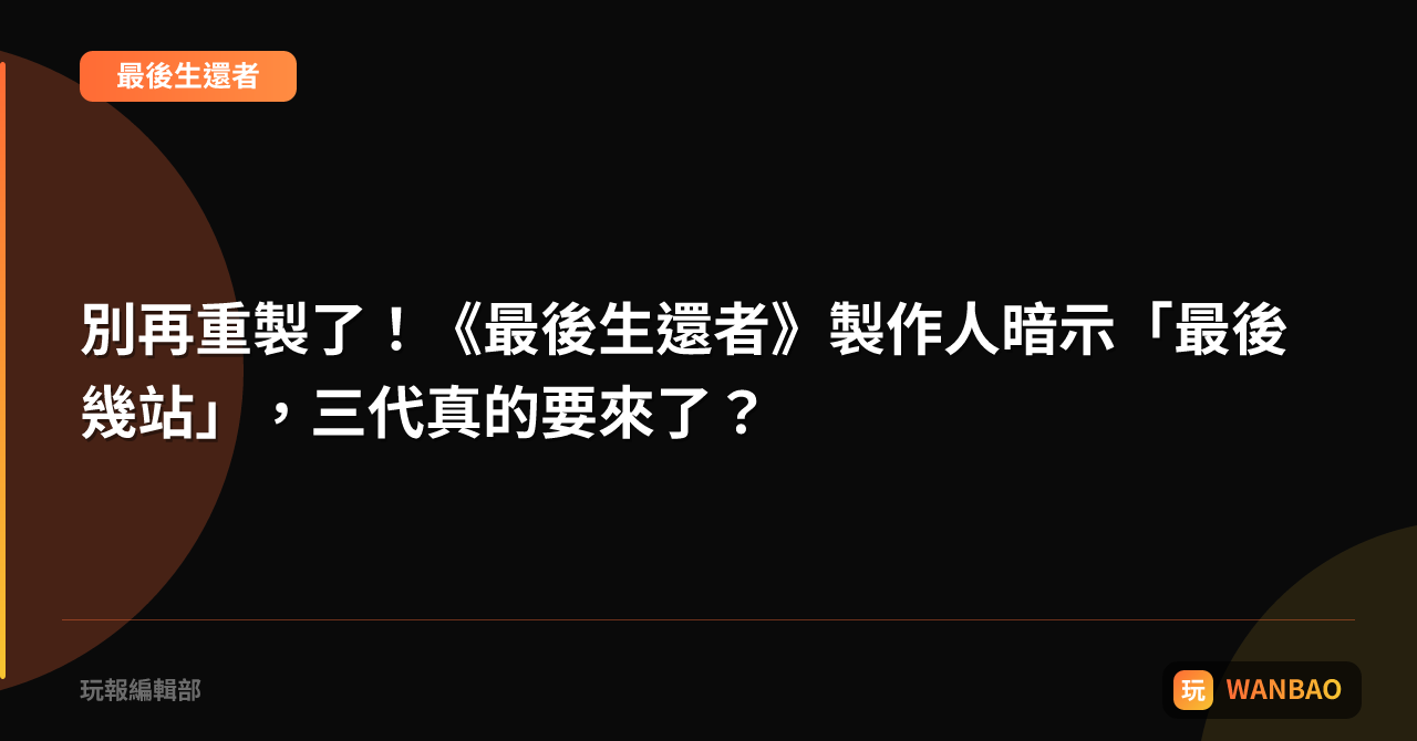 別再重製了!《最後生還者》製作人暗示「最後幾站」,三代真的要來了?