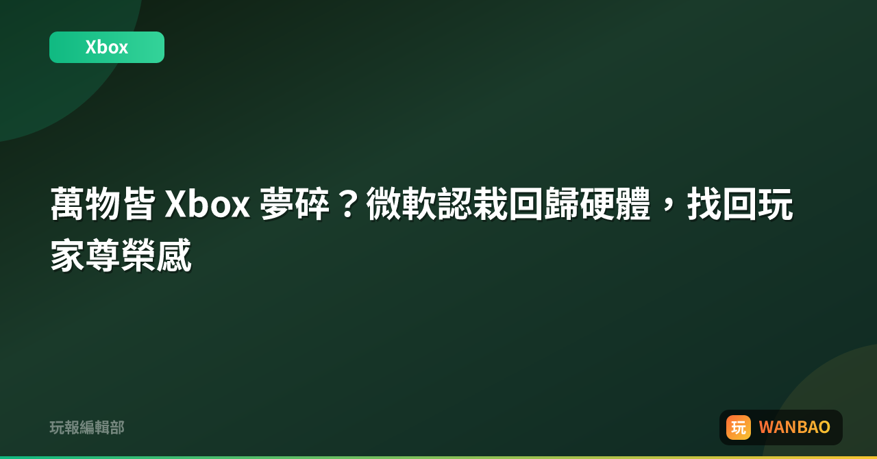 萬物皆 Xbox 夢碎?微軟認栽回歸硬體,找回玩家尊榮感