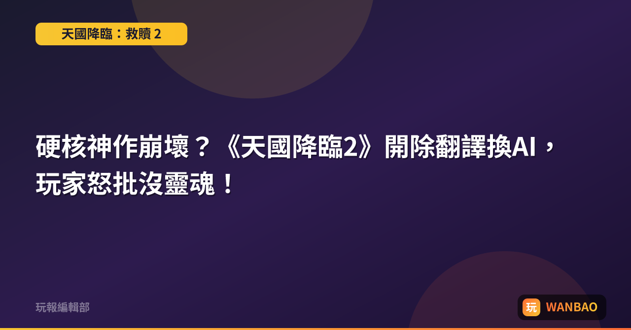 硬核神作崩壞?《天國降臨2》開除翻譯換AI,玩家怒批沒靈魂!