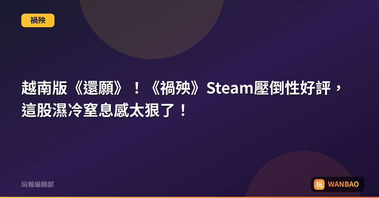 越南版《還願》!《禍殃》Steam壓倒性好評,這股濕冷窒息感太狠了!