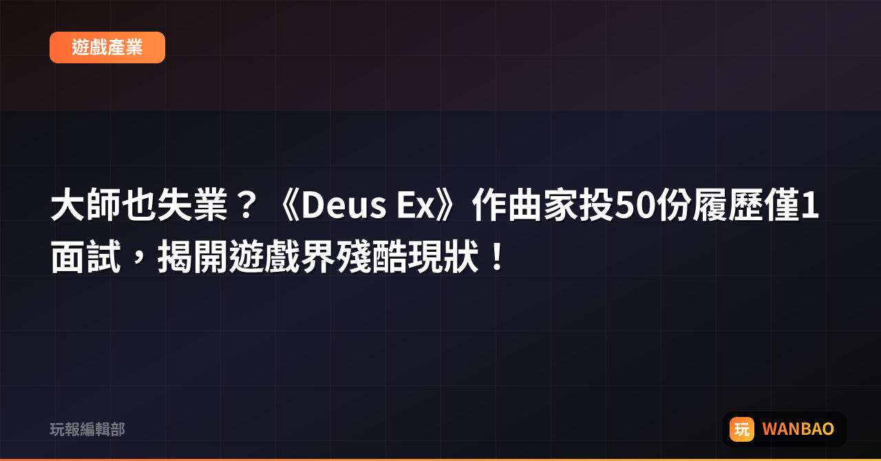 大師也失業?《Deus Ex》作曲家投50份履歷僅1面試,揭開遊戲界殘酷現狀!