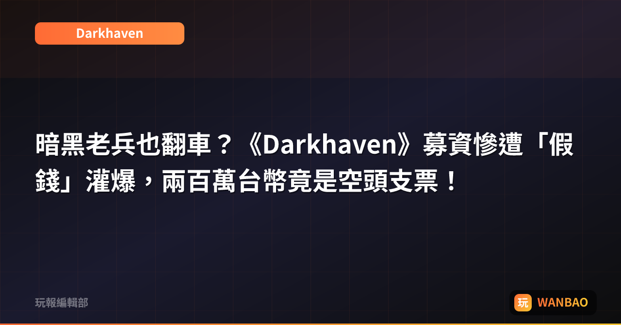 暗黑老兵也翻車?《Darkhaven》募資慘遭「假錢」灌爆,兩百萬台幣竟是空頭支票!