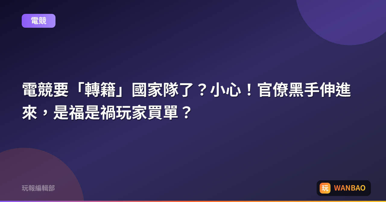 電競要「轉籍」國家隊了?小心!官僚黑手伸進來,是福是禍玩家買單?