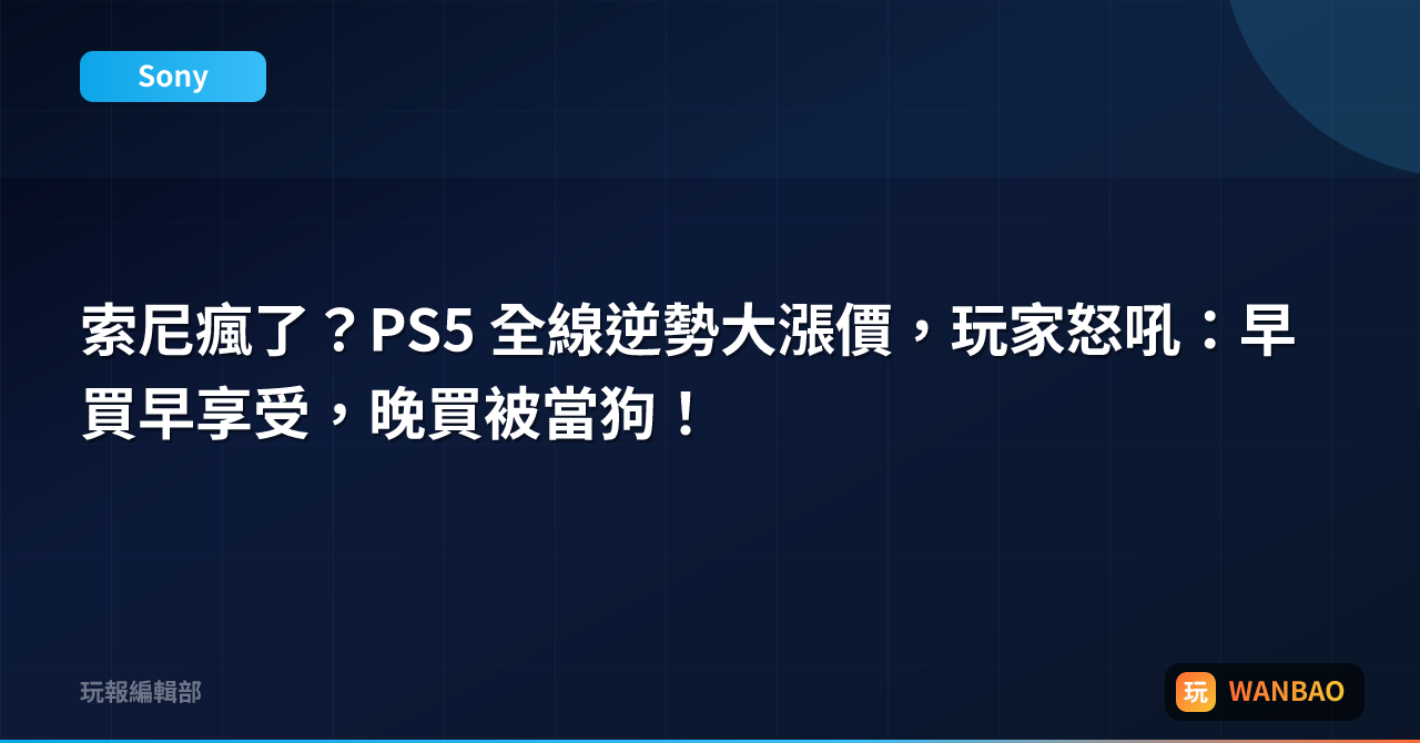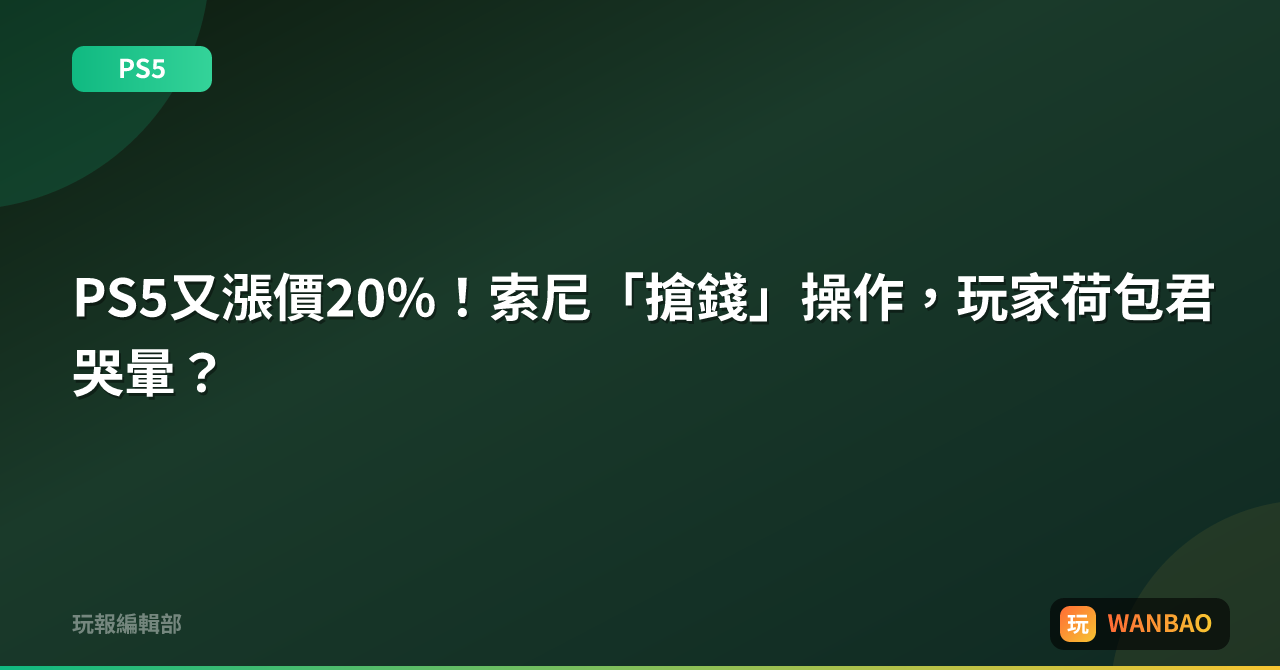 PS5又漲價20%!索尼「搶錢」操作,玩家荷包君哭暈?