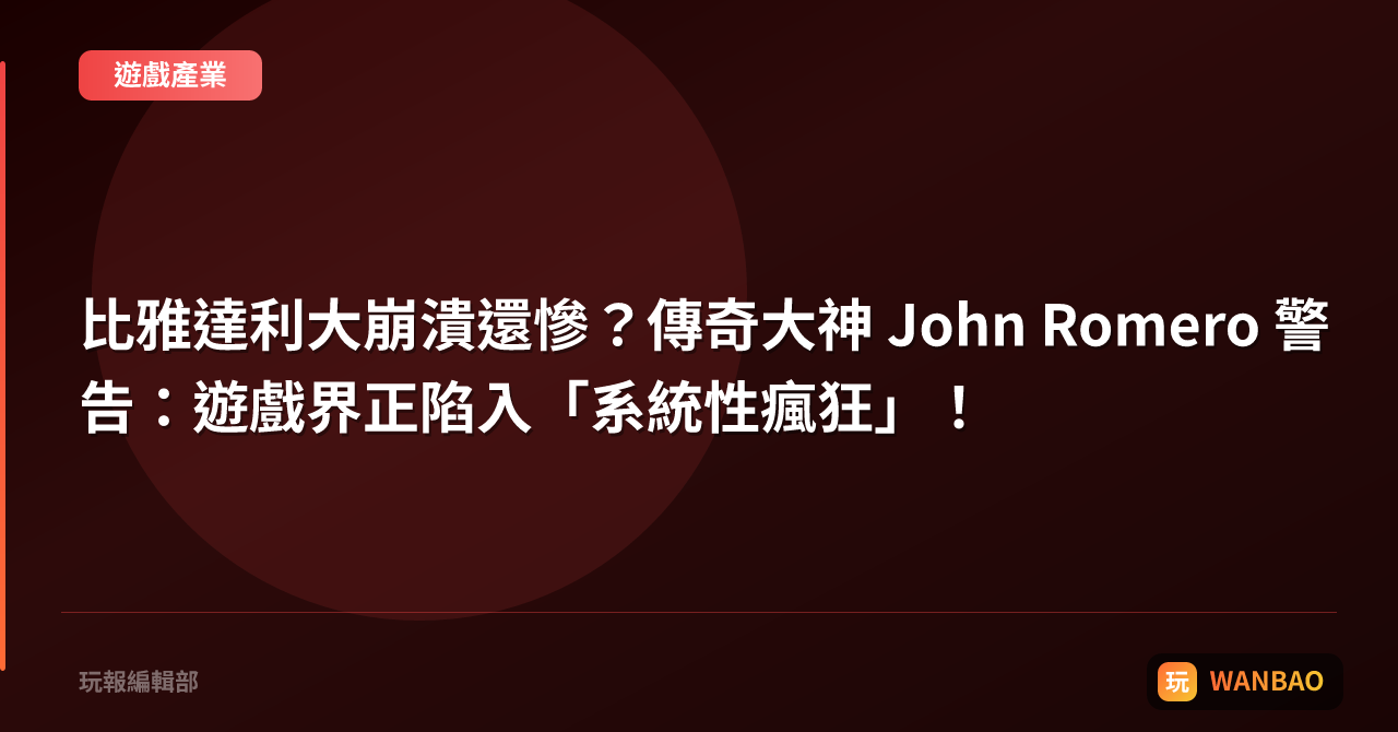比雅達利大崩潰還慘?傳奇大神 John Romero 警告:遊戲界正陷入「系統性瘋狂」!