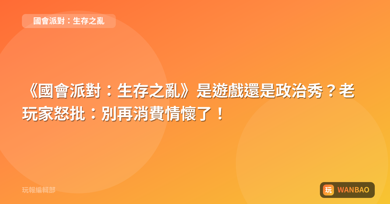 《國會派對:生存之亂》是遊戲還是政治秀?老玩家怒批:別再消費情懷了!