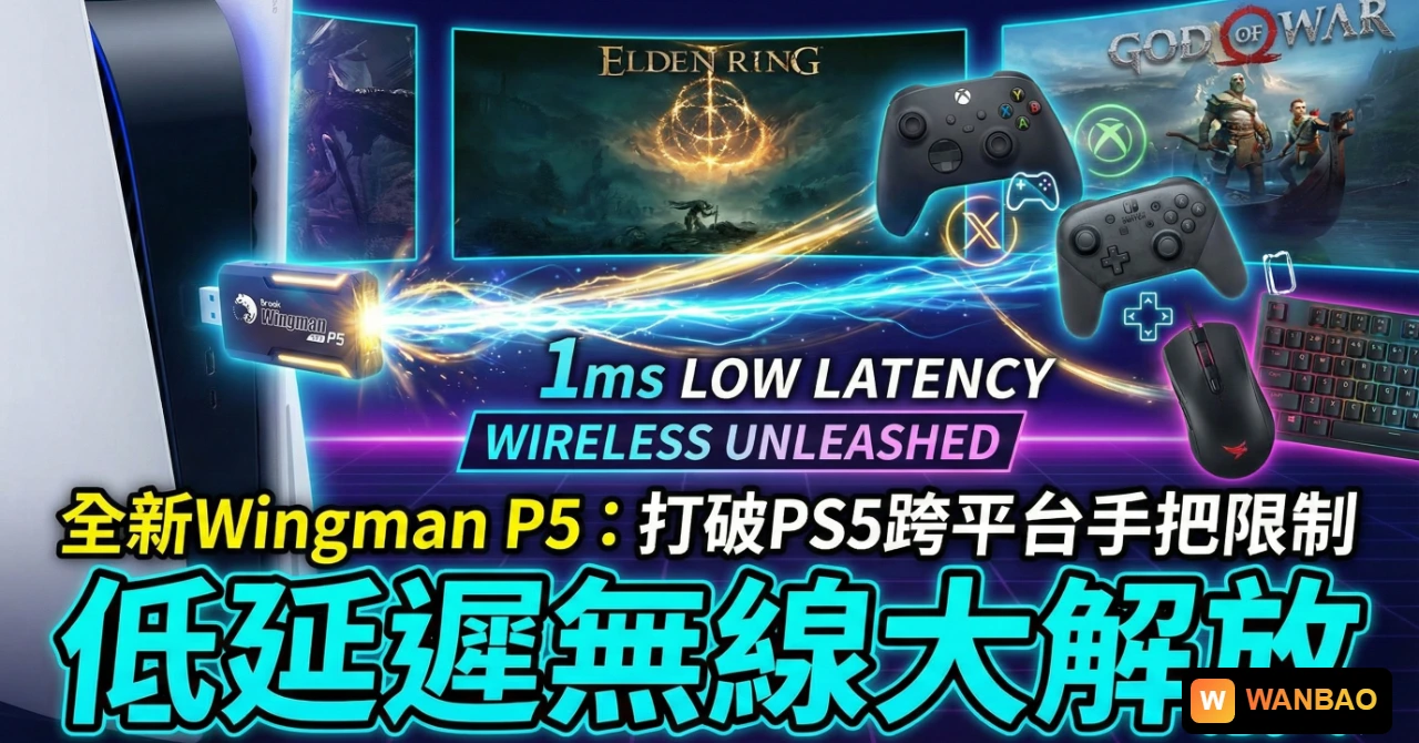 全新Wingman P5:打破PS5跨平台手把限制,低延遲無線大解放