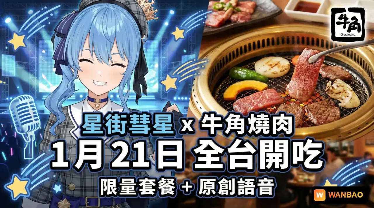 小編今天忍不住要跟大家聊聊超話題的「星街彗星 × 牛角燒肉」聯名!從官方公告得知,1 月 21 日正式上線的限定套餐「星街彗星特選盛」不只好吃,還同步推出全新原創語音,讓粉絲在點餐的同時,彷彿聽見彗星的甜美嗓音在耳邊細語,這波跨界真的讓人心跳加速。 說到背景,星街彗星作為 Hololive 中人氣極高的 VTuber,近年來已多次與實體品牌合作,從咖啡廳到服飾,無所不包。而牛角則是日本最具代表性