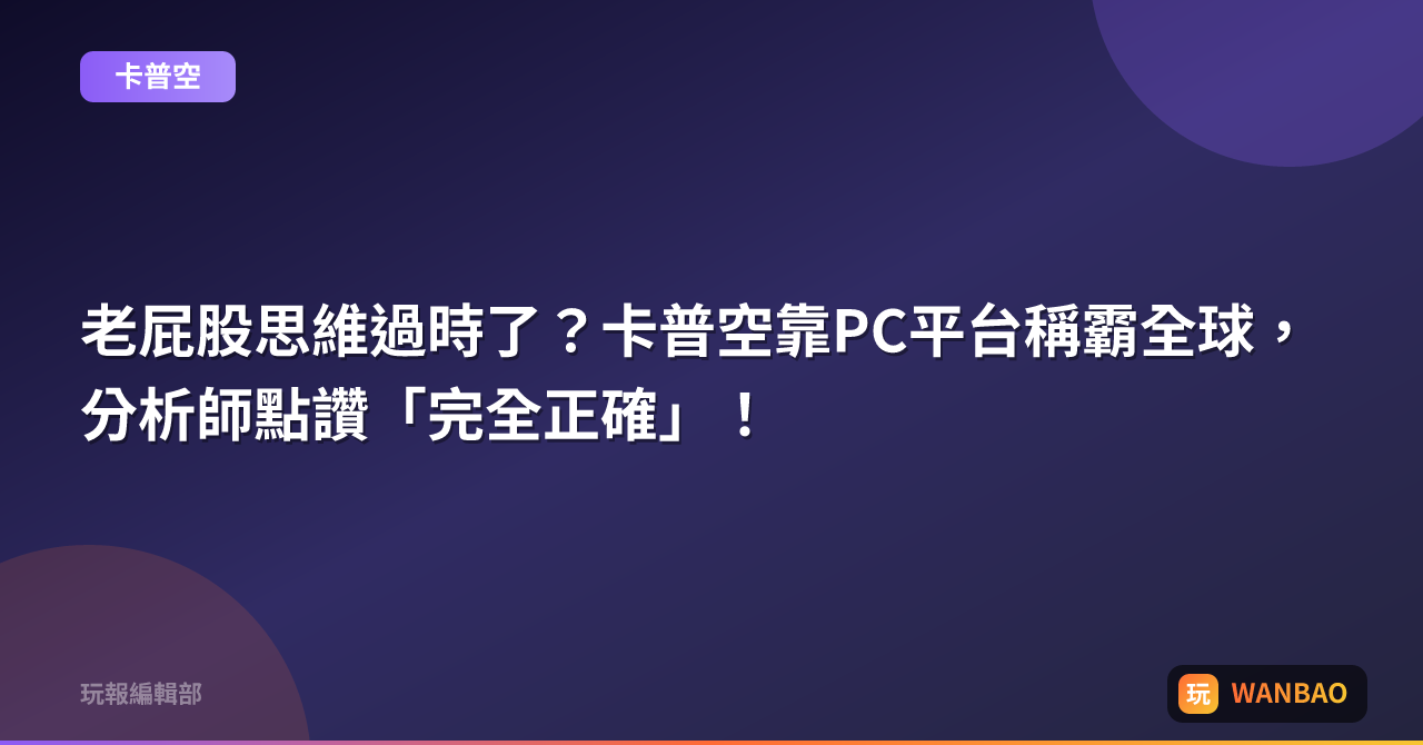 老屁股思維過時了?卡普空靠PC平台稱霸全球,分析師點讚「完全正確」!