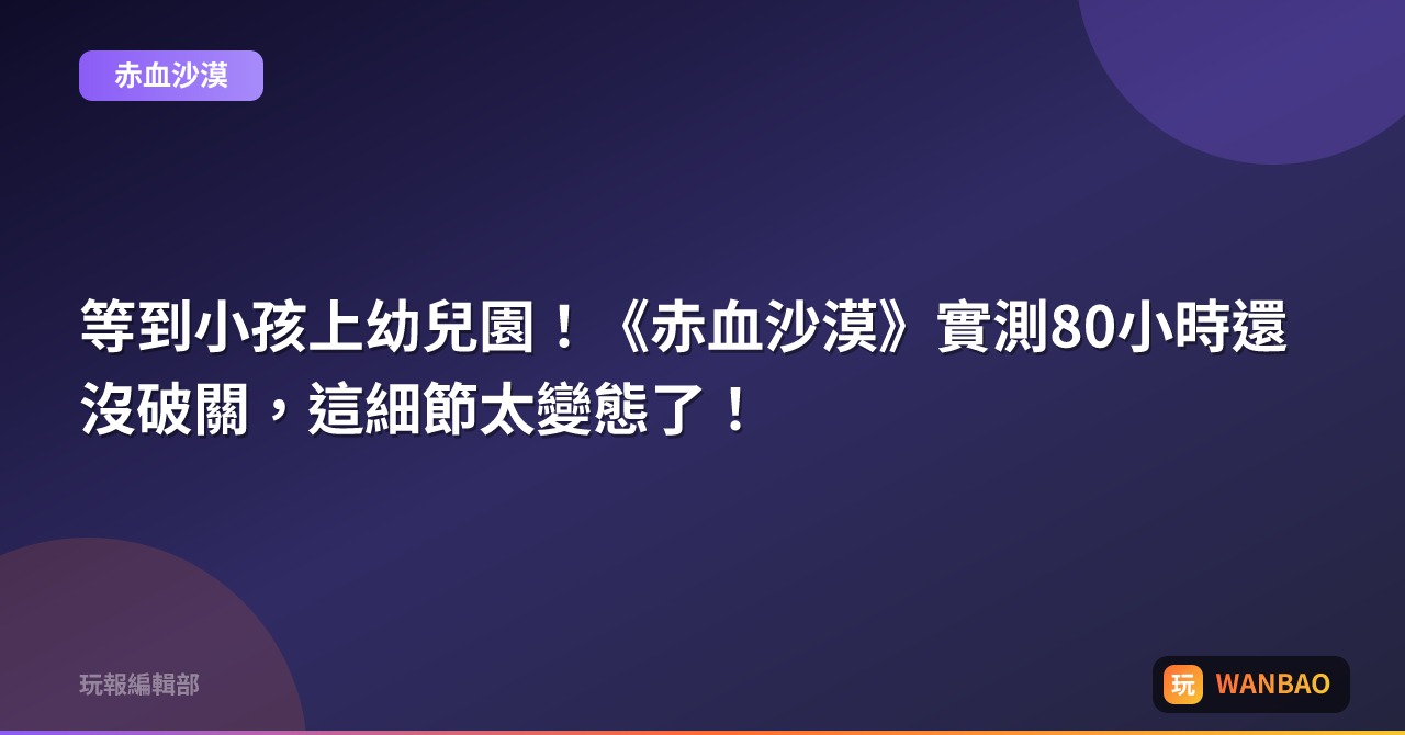 等到小孩上幼兒園!《赤血沙漠》實測80小時還沒破關,這細節太變態了!