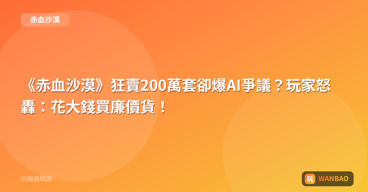 《赤血沙漠》狂賣200萬套卻爆AI爭議?玩家怒轟:花大錢買廉價貨!