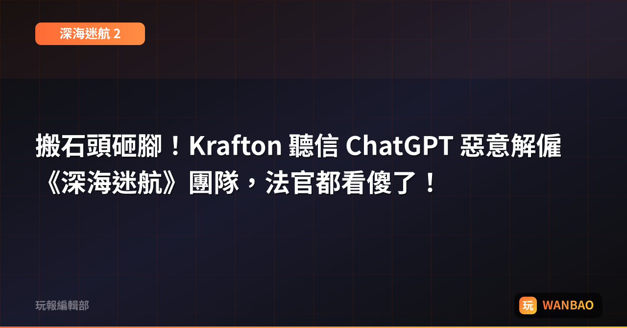 搬石頭砸腳!Krafton 聽信 ChatGPT 惡意解僱《深海迷航》團隊,法官都看傻了!