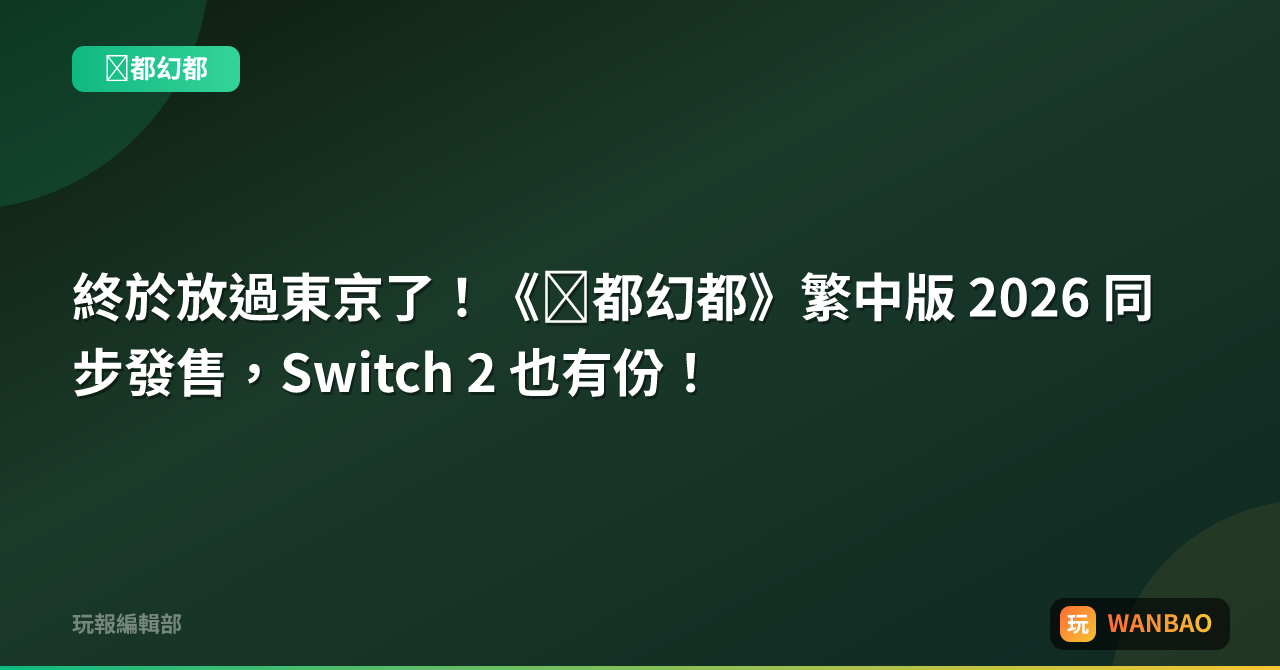 終於放過東京了!《亰都幻都》繁中版 2026 同步發售,Switch 2 也有份!