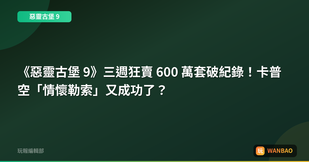 《惡靈古堡 9》三週狂賣 600 萬套破紀錄!卡普空「情懷勒索」又成功了?