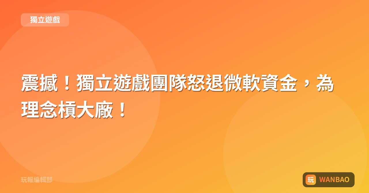 震撼!獨立遊戲團隊怒退微軟資金,為理念槓大廠!