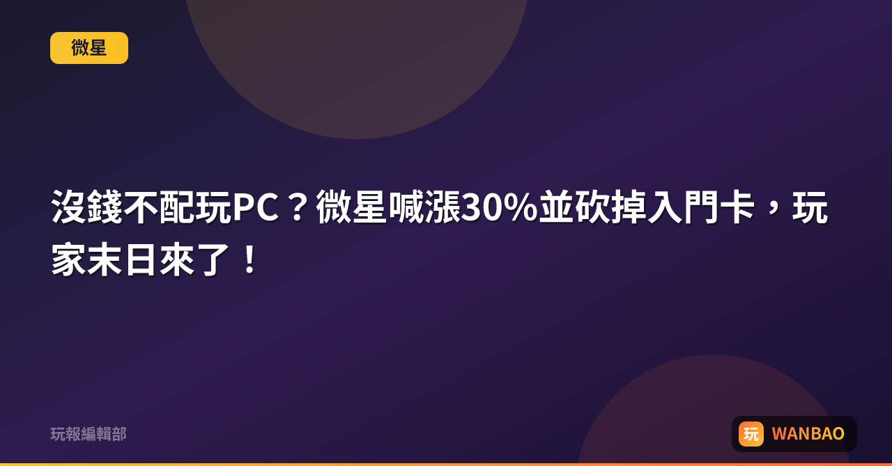 沒錢不配玩PC?微星喊漲30%並砍掉入門卡,玩家末日來了!