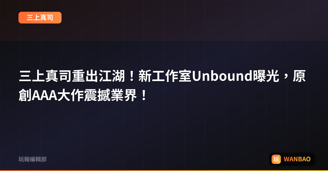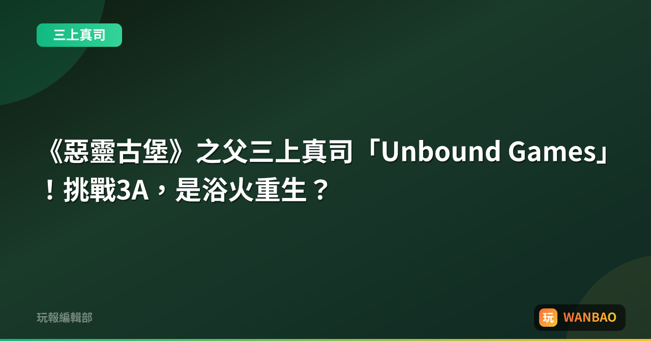 《惡靈古堡》之父三上真司成立「Unbound Games」,誓言打造原創3A!在巨頭環伺下,這簡直是把遊戲人生玩成極限挑戰啊!