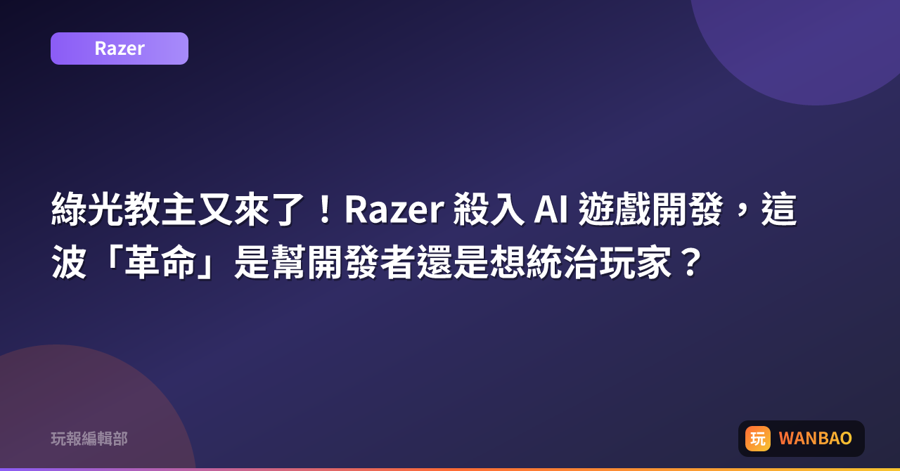 綠光教主又來了!Razer 殺入 AI 遊戲開發,這波「革命」是幫開發者還是想統治玩家?