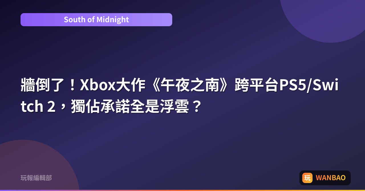 牆倒了!Xbox大作《午夜之南》跨平台PS5/Switch 2,獨佔承諾全是浮雲?