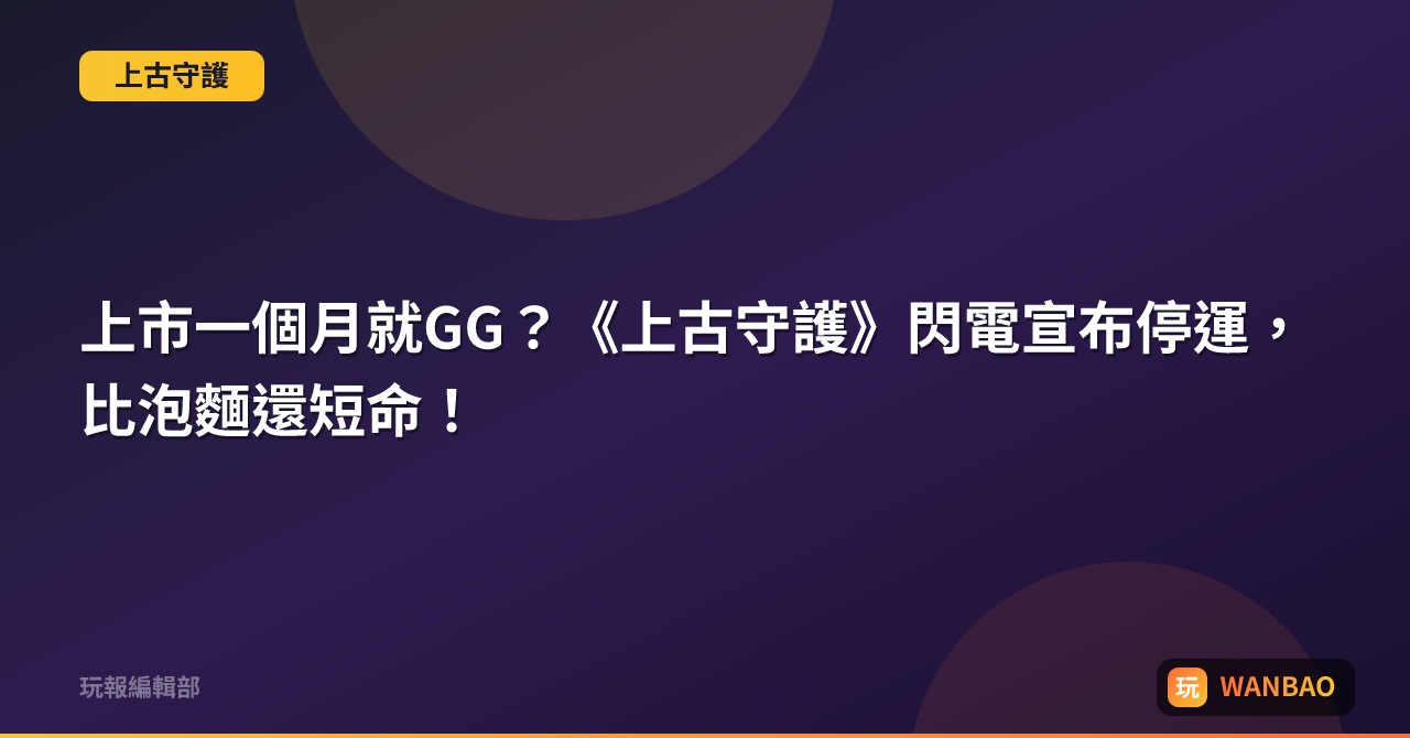 蜜月期都沒過就離婚!《上古守護》營運一個月閃電收攤,這波快閃操作讓玩家集體傻眼。
