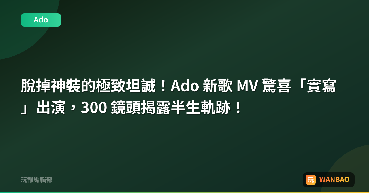 脫掉神裝的極致坦誠!Ado 新歌 MV 驚喜「實寫」出演,300 鏡頭揭露半生軌跡!