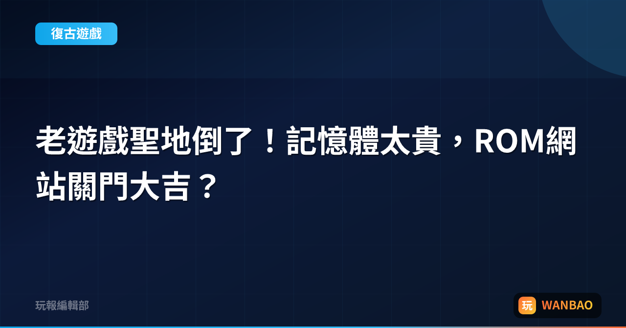 全球知名ROM網站因記憶體飆漲與捐款減少而關閉,老遊戲的數位方舟面臨沉沒危機!